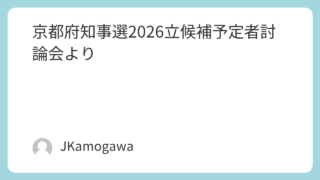 京都府知事選2026 京都府知事選2026立候補予定者討論会より 京都府知事選2026立候補予定者討論会京都府知事選2026立候補予定者討論会の文字おこしからAI要約。文字起こし全体は下に。引用元: 京都府知事選2026立候補予定者討論会|KBS京都 2026年京都府知事選挙の立候補予定者3名(西脇隆俊氏... 2026.03.29 京都府知事選2026